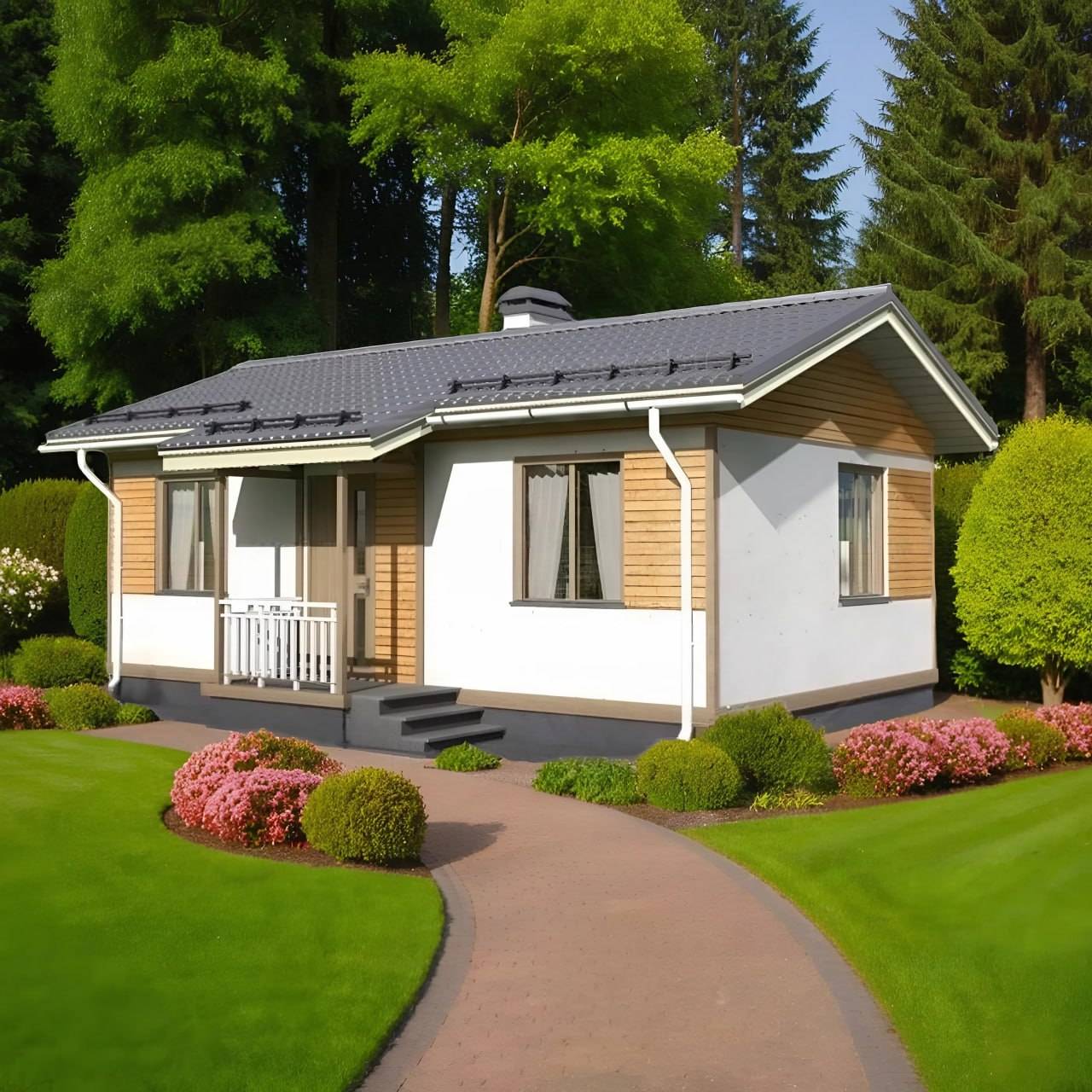 „Viva“ je kompaktna i praktična kuća, savršena za život tokom cele godine, letnju kućicu ili smeštaj gostiju. Zahvaljujući svom jednostavnom obliku i klasičnom krovu, lako će se uklopiti u bilo koji pejzaž.